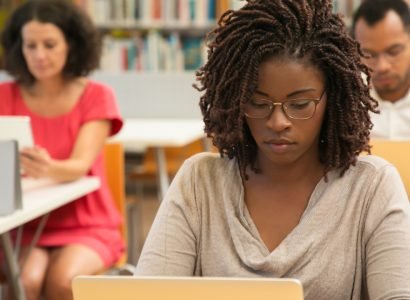 American Student Studying at Library